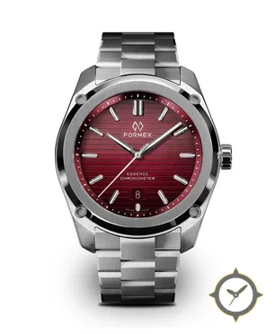 A Sports watch with a versatile 41mm case, that suits most wrists, crafted from stainless steel featuring a red dial with a unique horizontal brushing (striped) finish.