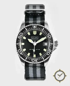 A Dive watch with a bold 43mm presence on the wrist, crafted from stainless steel featuring a black dial with a unique matte finish.