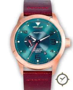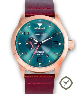 A Pilot watch with a versatile 40mm case, that suits most wrists, crafted from gold featuring a turquoise dial with a unique sunburst finish.