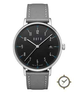 A Minimalist watch with a vintage-inspired 33.5mm case, crafted from stainless steel featuring a black dial with a unique matte finish.