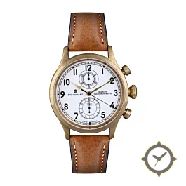 A Pilot watch with a bold 45mm presence on the wrist, crafted from bronze featuring a white dial with a unique matte finish.
