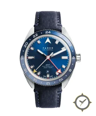 A GMT watch with a versatile 41mm case, that suits most wrists, crafted from stainless steel featuring a blue dial with a unique sunburst finish and a true GMT complication for tracking a second time zone.