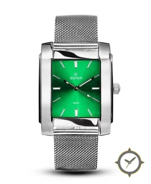 A Dress watch with a bold 41.5mm presence on the wrist, crafted from stainless steel featuring a green dial with a unique sunburst (radial gradient) finish.