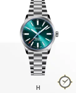 A Sports watch with a bold 45mm presence on the wrist, crafted from stainless steel featuring a turquoise dial with a unique sunburst finish.