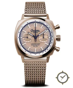 A Chronograph watch with a bold 46mm presence on the wrist, crafted from stainless steel featuring a gold dial with a unique sunburst finish.
