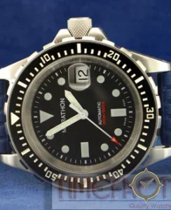 A Dive watch, crafted from stainless steel featuring a black dial with a unique matte finish.