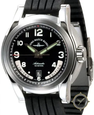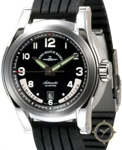A Aviation watch, crafted from stainless steel featuring a black dial with a unique matte finish.