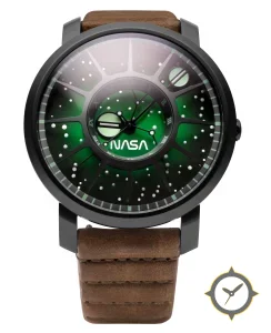A Aviation watch with a vintage-inspired 37.5mm case, crafted from stainless steel featuring a green dial with a unique sunburst/gradient finish.
