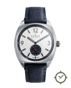 A Dress watch with a bold 44.5mm presence on the wrist, crafted from stainless steel featuring a white dial with a unique textured guilloché / hobnail (waffle) finish finish.