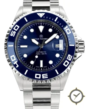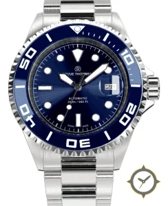 A Dive watch with a bold 50mm presence on the wrist, crafted from stainless steel featuring a blue dial with a unique sunburst finish.