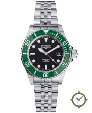 A Dive watch with a vintage-inspired 36mm case, crafted from stainless steel featuring a black dial with a unique matte finish.