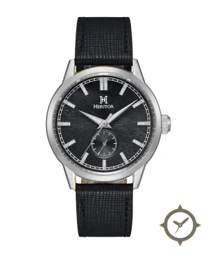 A Dress watch with a bold 48mm presence on the wrist, crafted from stainless steel featuring a black dial with a unique sunburst / brushed texture finish.