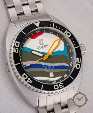 A Dive watch with a bold 44.5mm presence on the wrist, crafted from stainless steel featuring a blue dial with a unique multilayer matte with some metallic sparkle on select layers finish.
