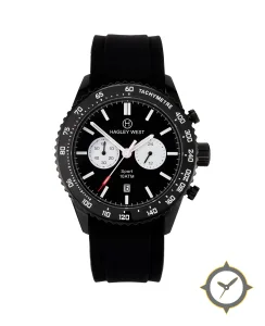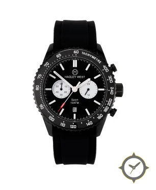 A Chronograph watch with a bold 42.5mm presence on the wrist, crafted from stainless steel featuring a black dial with a unique matte finish.
