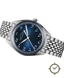A Dress watch with a vintage-inspired 36mm case, crafted from stainless steel featuring a blue dial with a unique sunburst finish.