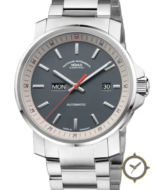 A Sports watch with a versatile 38.5mm case, that suits most wrists, crafted from stainless steel featuring a gray dial with a unique matte finish.