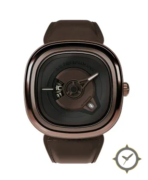 A Luxury watch with a bold 47.5mm presence on the wrist, crafted from stainless steel featuring a black dial with a unique multi-layered concentric discs with central sunburst finish finish.