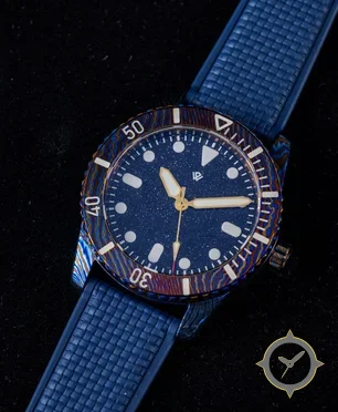 A Dive watch with a versatile 39mm case, that suits most wrists, crafted from Coating featuring a blue dial with a unique sparkling/granulated (starfield) finish.