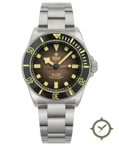 A Dive watch with a vintage-inspired 32.5mm case, crafted from stainless steel featuring a brown dial with a unique fumé / sunburst gradient finish.