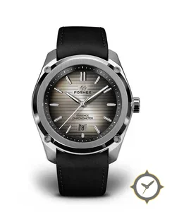 A Sports watch with a bold 44.5mm presence on the wrist, crafted from stainless steel featuring a gray dial with a unique horizontal lined / linear brushing finish.