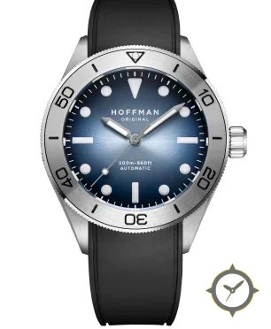 A Dive watch with a bold 41.5mm presence on the wrist, crafted from stainless steel featuring a blue dial with a unique sunburst finish.
