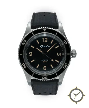 A Dive watch with a versatile 38mm case, that suits most wrists, crafted from stainless steel featuring a black dial with a unique brushed finish.