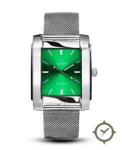 A Dress watch with a vintage-inspired 35.5mm case, crafted from stainless steel featuring a green dial with a unique sunburst gradient finish.
