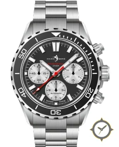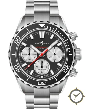 A Dive watch with a bold 51mm presence on the wrist, crafted from stainless steel featuring a black dial with a unique matte finish.