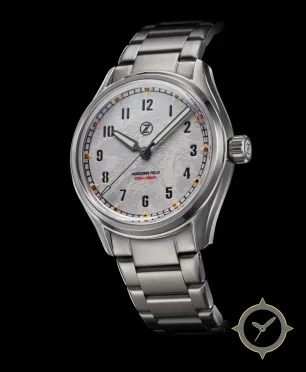 A Field watch with a bold 41.5mm presence on the wrist, crafted from stainless steel featuring a white dial with a unique textured, stone-like/grained finish finish.