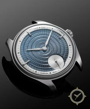 A Dress watch with a bold 45mm presence on the wrist, crafted from stainless steel featuring a blue dial with a unique guilloché (engine-turned) finish.