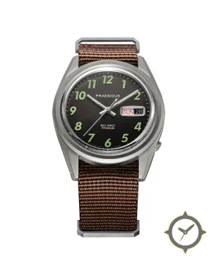 A Field watch with a bold 42mm presence on the wrist, crafted from titanium featuring a black dial with a unique matte-sunburst finish.