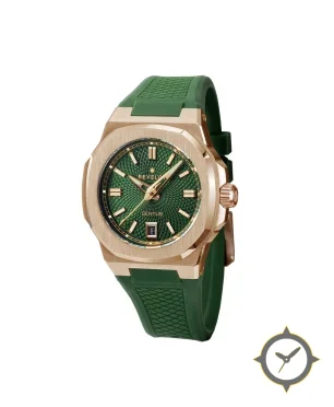 A Luxury watch with a versatile 41mm case, that suits most wrists, crafted from gold featuring a green dial with a unique guilloché / waffle textured finish.