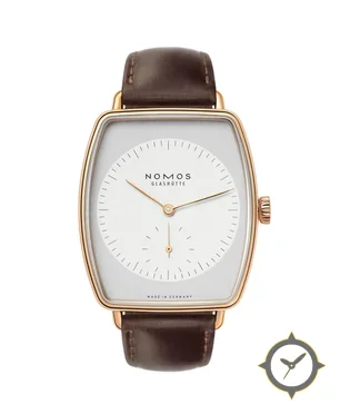 A Dress watch with a vintage-inspired 36mm case, crafted from gold featuring a white dial with a unique matte finish.