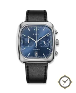 A Chronograph watch with a bold 44mm presence on the wrist, crafted from stainless steel featuring a blue dial with a unique sunburst metallic finish.