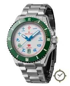 A Dive watch with a vintage-inspired 36mm case, crafted from stainless steel featuring a white dial with a unique glossy lacquer finish.