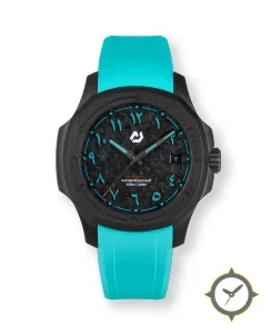 A Sports watch with a bold 44mm presence on the wrist, crafted from carbon featuring a black dial with a unique forged carbon / carbon-fiber finish.