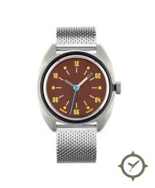 A Minimalist watch with a bold 41.5mm presence on the wrist, crafted from stainless steel featuring a brown dial with a unique matte finish.