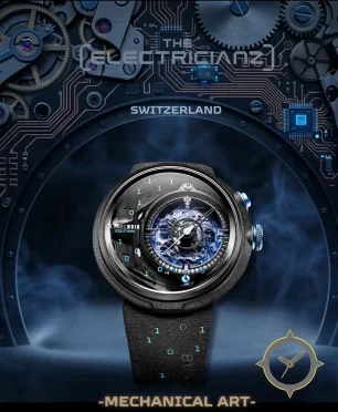 A Skeleton watch with a bold 53mm presence on the wrist, crafted from ceramic featuring a blue dial with a unique open-worked skeletonized with visible movement and layered depth finish.