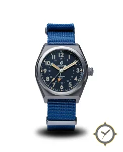A GMT watch with a versatile 38mm case, that suits most wrists, crafted from titanium featuring a blue dial with a unique matte finish and a true GMT complication for tracking a second time zone.