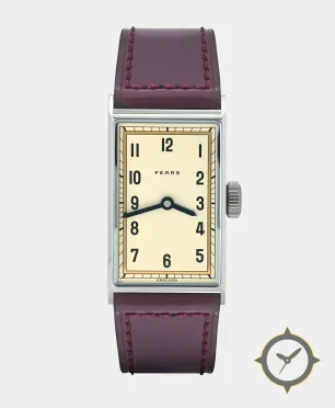 A Dress watch with a vintage-inspired 27.5mm case, crafted from stainless steel featuring a white dial with a unique smooth, ivory/cream lacquer finish finish.