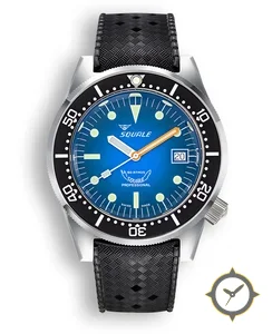 A Dive watch with a bold 50.5mm presence on the wrist, crafted from stainless steel featuring a blue dial with a unique sunburst finish.