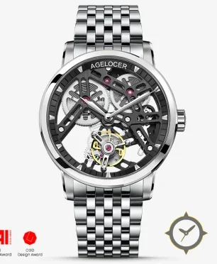 A Skeleton watch with a vintage-inspired 36.5mm case, crafted from stainless steel featuring a silver dial with a unique open-work/skeleton finish.