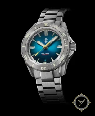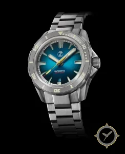 A Dive watch with a bold 47.5mm presence on the wrist, crafted from stainless steel featuring a blue dial with a unique sunburst finish.
