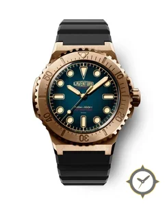 A Dive watch with a bold 44.5mm presence on the wrist, crafted from bronze featuring a blue dial with a unique sunburst finish.