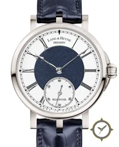 A Dress watch with a vintage-inspired 32mm case, crafted from stainless steel featuring a white dial with a unique grained center disc with smooth outer ring finish.