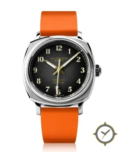 A Vintage watch with a vintage-inspired 35mm case, crafted from stainless steel featuring a black dial with a unique grained/matte finish.