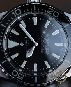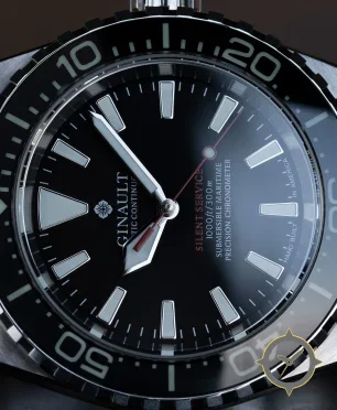 A Dive watch with a bold 43mm presence on the wrist, crafted from stainless steel featuring a black dial with a unique glossy finish.