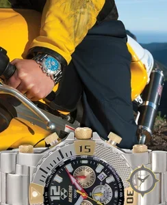 A Dive watch with a bold 54mm presence on the wrist, crafted from stainless steel featuring a black dial with a unique textured with knurled chapter ring finish.
