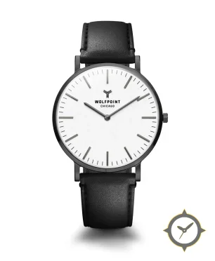 A Minimalist watch with a bold 44.5mm presence on the wrist, crafted from stainless steel featuring a white dial with a unique matte finish.