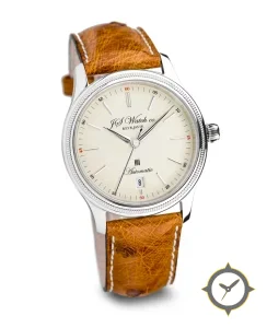 A Dress watch with a bold 42.5mm presence on the wrist, crafted from stainless steel featuring a white dial with a unique matte/eggshell finish.